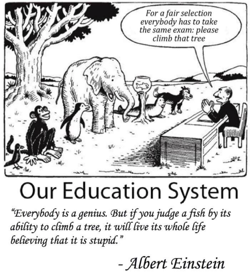 “Everybody is a genius. But if you judge a fish by its ability to climb a tree, it will live its whole life believing that it is stupid” - Not Einstein