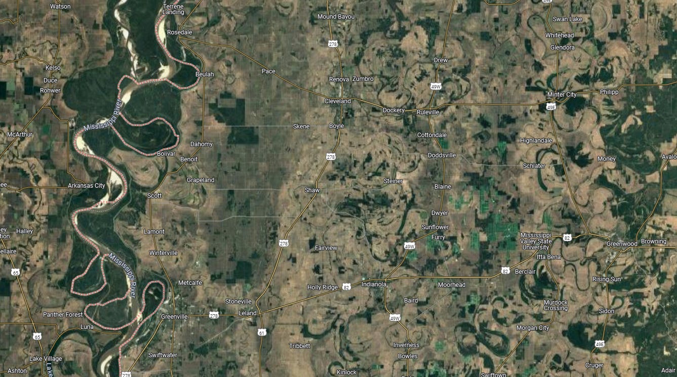 Recently, I was flying to the East Coast, and, while enjoying the view at 30,000 feet, I noticed fun loops and twists writhing across the landscape. I did a double-take when I realized these were the scars of the Mighty Mississippi, stretching 60 miles to the east of its current location. It’s a permanent testament to the volatility of that river in the past, a point Mark Twain and others talked about, that the Mississippi was never the same river year over year.
