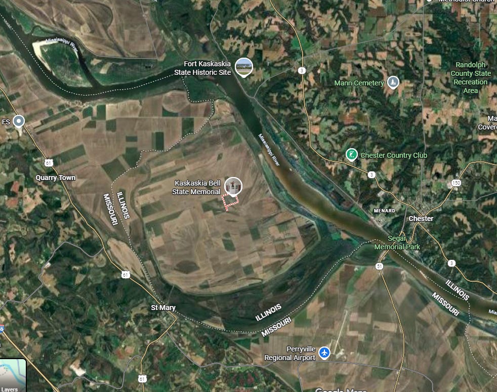 But that’s annoying to have to deal with each year. You certainly can’t manage land rights well. Imagine buying property on the shore for your shipping business and, a year later, being a mile away from the river. Even state boundaries changed as the river fluctuated, shifting Kaskaskia, Illinois, from the east bank to the west bank, where it remains today. So, humans dammed, dyked, and directed the Mississippi to where it is now.