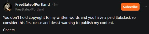I recently met FreeStateofPortland who has won the prize for the most restacks of my articles and notes, but sadly, a narcissistic NPC. It’s been painful to watch, but insightful into the psychology of it all as well.